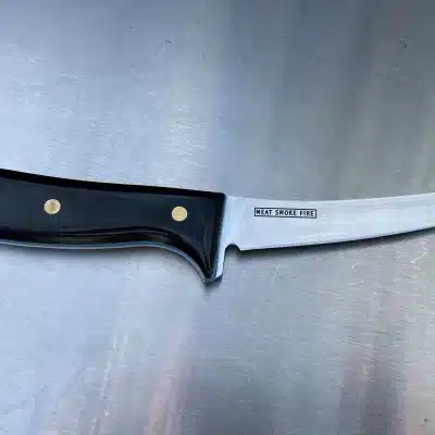 We’ve teamed up with Savernake, a British knife manufacturer based in Wiltshire. Each of the knives has both a Meat Smoke Fire logo on the blade, as well as a super hygienic handle featuring the Meat Smoke Fire signature blue.