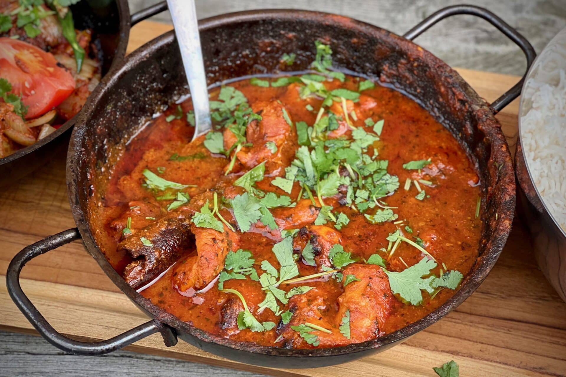 This recipe was taken from Misty Ricardo’s Curry Compendium, a great cookbook with British Indian Restaurant recipes. I have tweaked the recipe slightly to make it work on the Big Green Egg and will give you a bit of advice on heat.