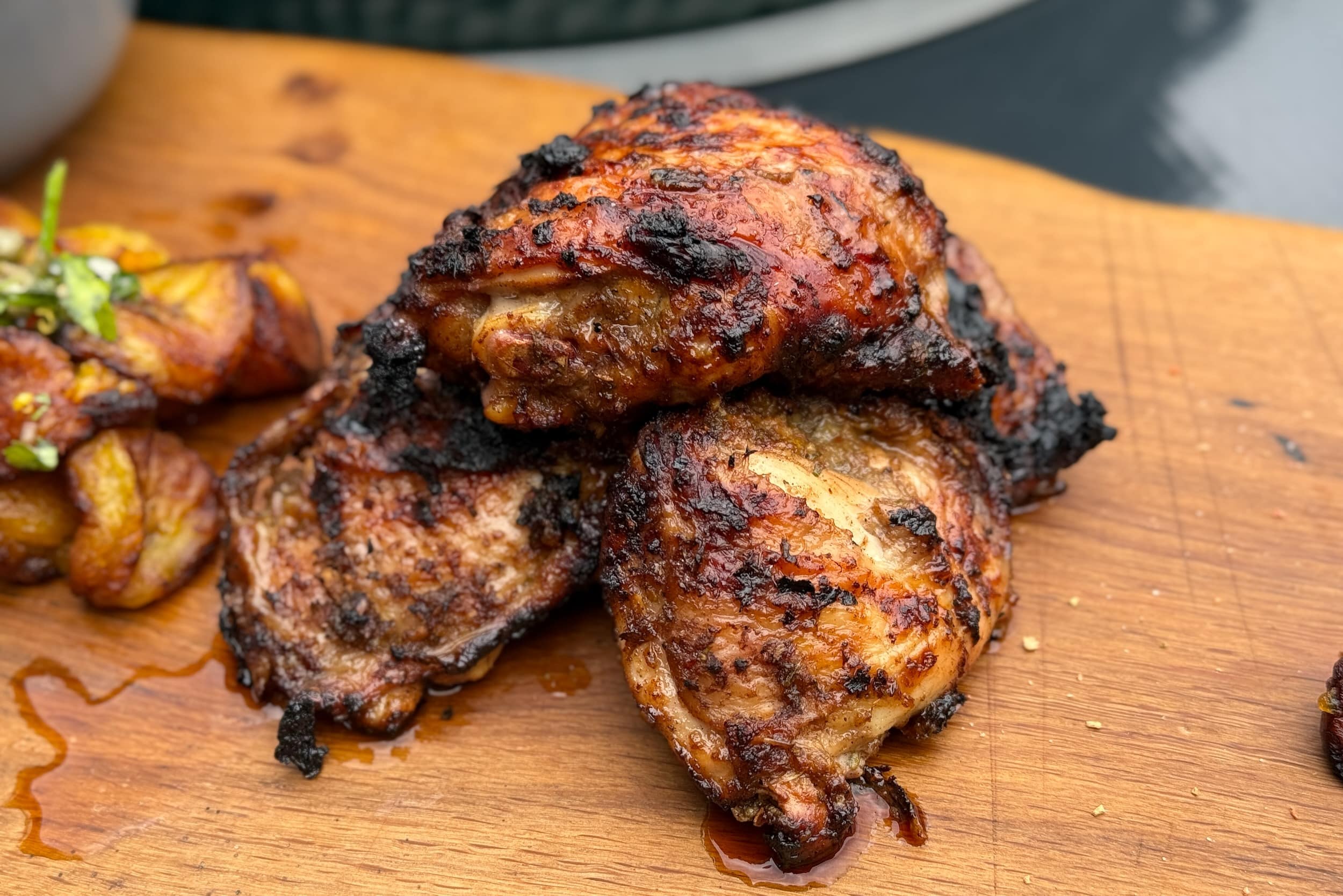 This recipe is all about building layers of taste—from a vibrant jerk marinade made with Scotch bonnet chillies, thyme, allspice and fresh herbs, to the gentle kiss of smoke from the Egg. Whether you’re cooking for a crowd or just spicing up a weeknight dinner, these jerk chicken thighs are a guaranteed hit.