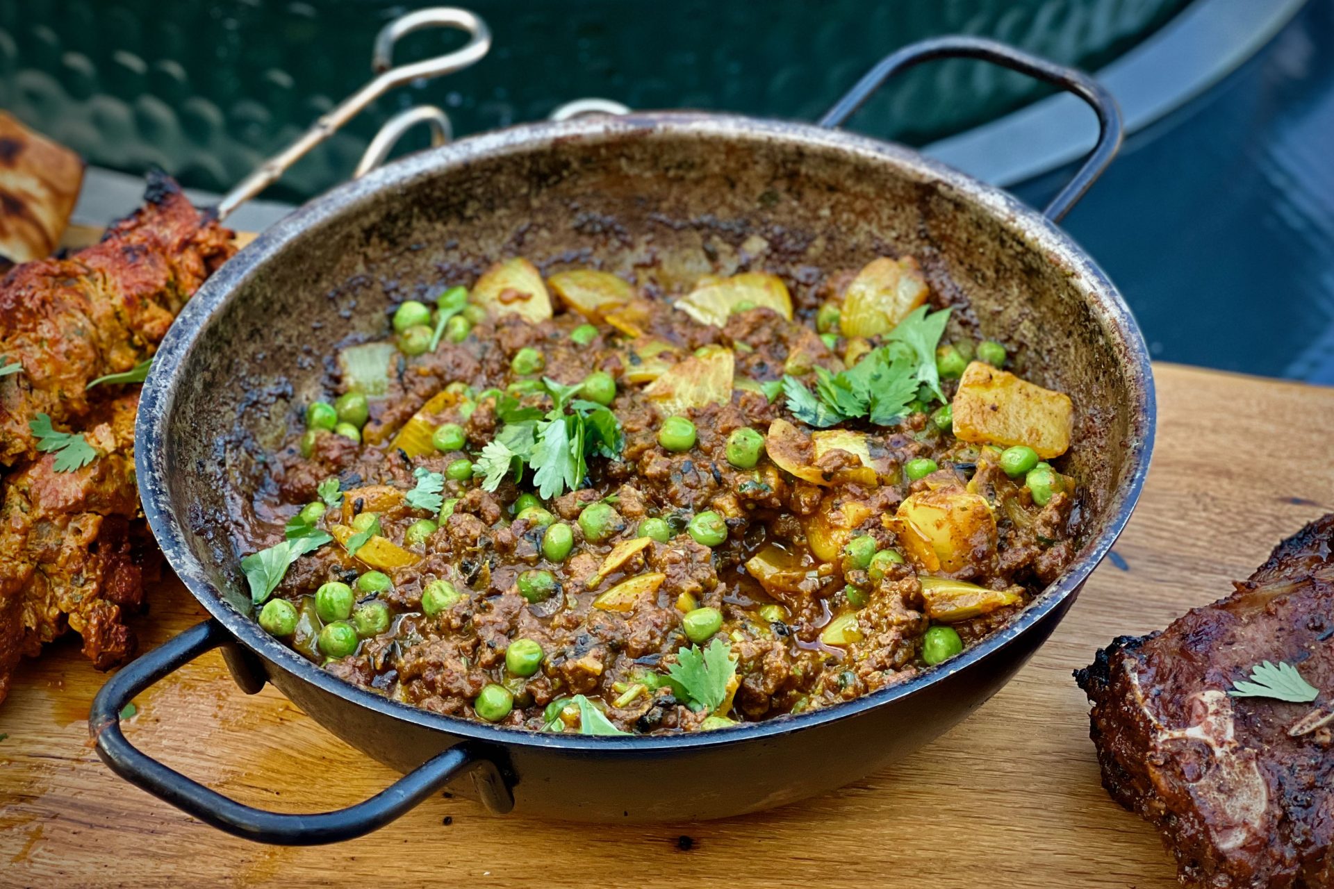 - Setup your Egg for a direct cook at 180°C with your stainless steel grid and a Birmingham Balti Bowl Company balti bowl (or use a dutch oven)..