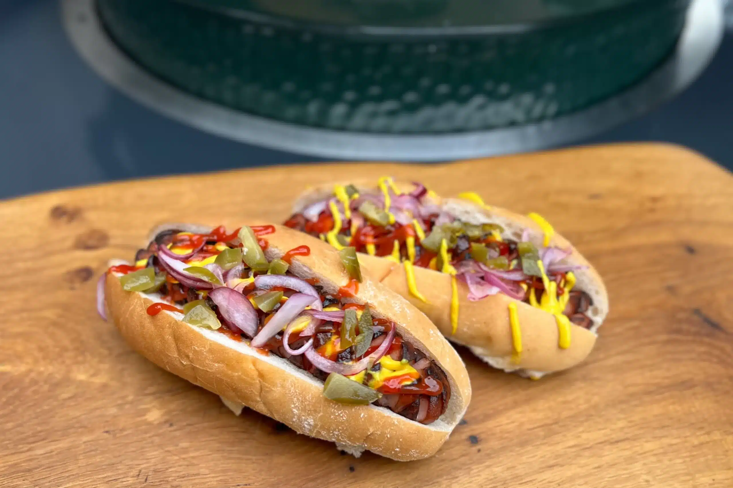 - Set up your Big Green Egg for a direct cook at 200°C.