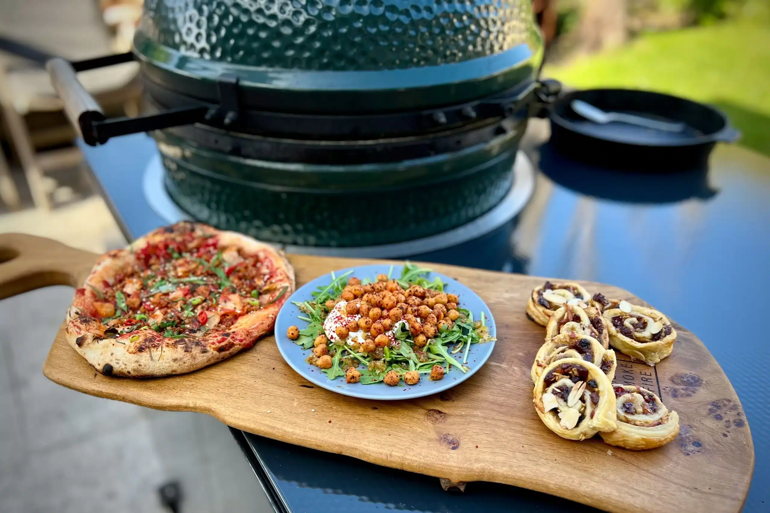 - Set up your Big Green Egg for an indirect cook at 300°C.