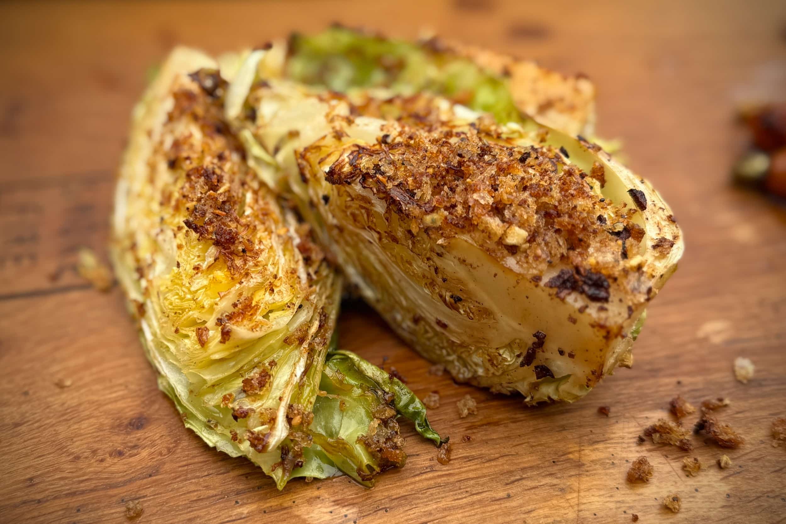 Crispy Hispi Cabbage with Garlic Butter Crumb