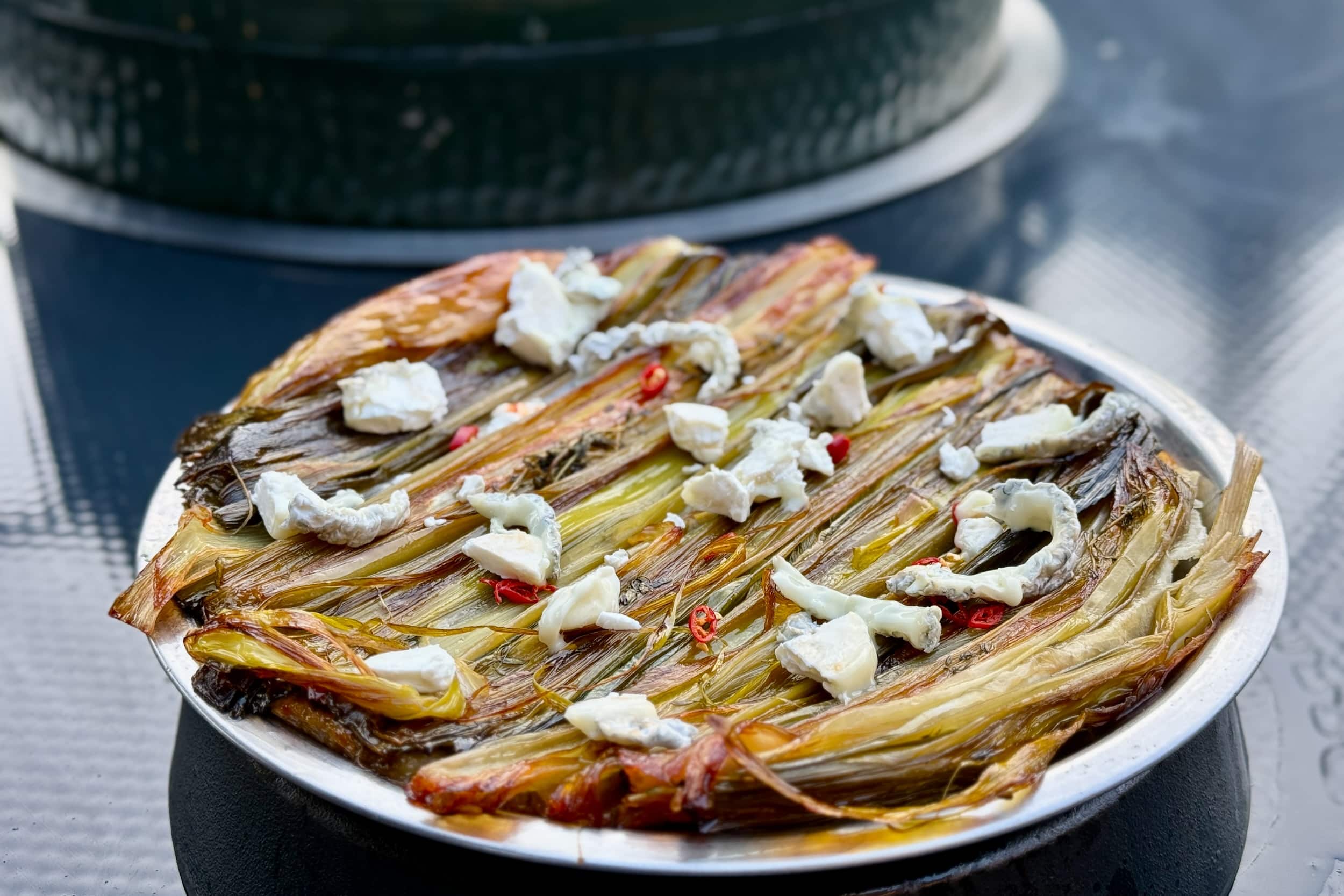 This leek tarte tatin is a cracking little dish that’s tasty and easy to cook on the Big Green Egg. The leeks are roasted before being caramelised in honey and butter with just a hint of sweetness, and the puff pastry turns golden and crisp.