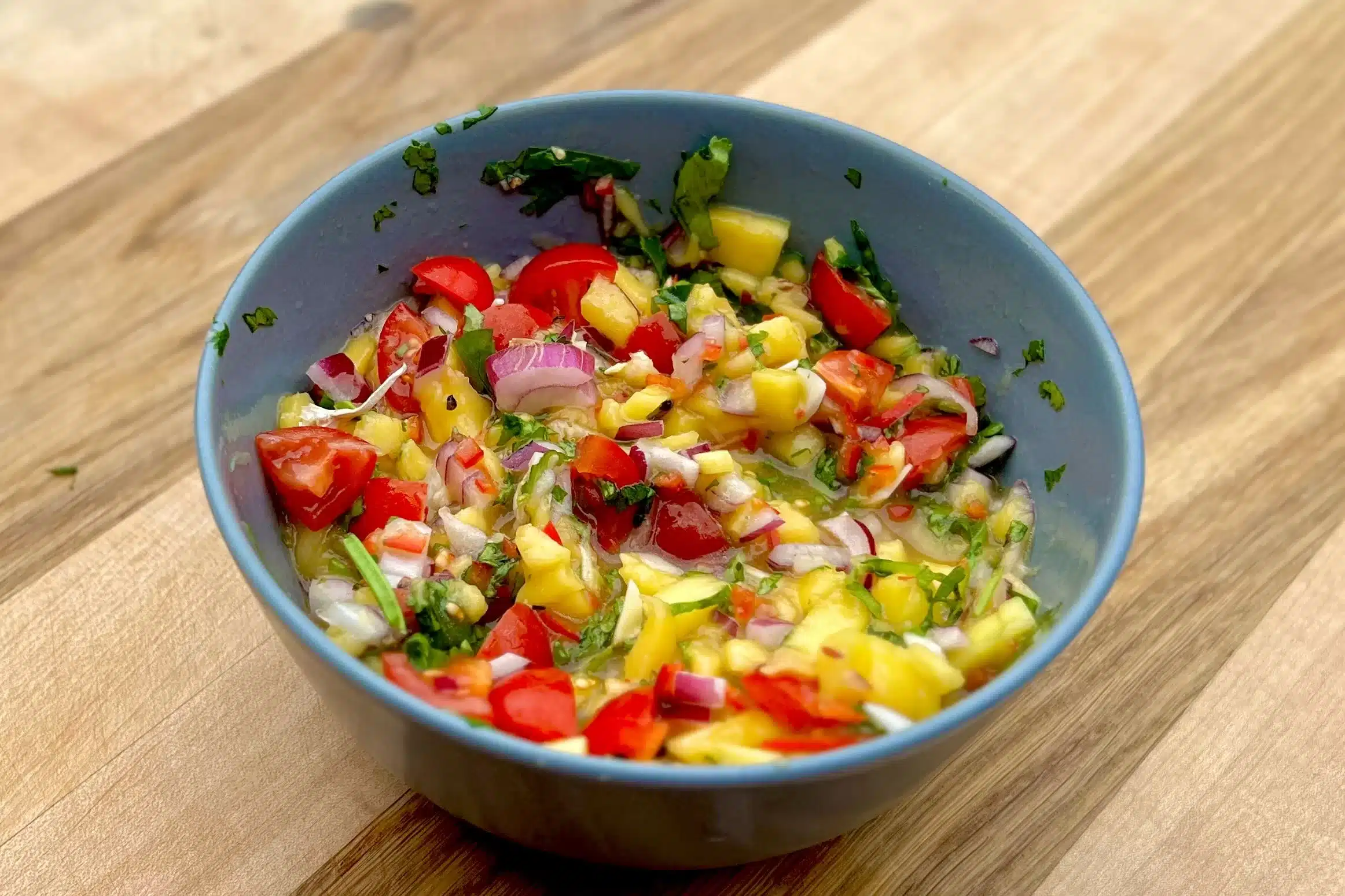 This salsa is great served on its own, but it’s also a great side for dishes like jerk chicken.