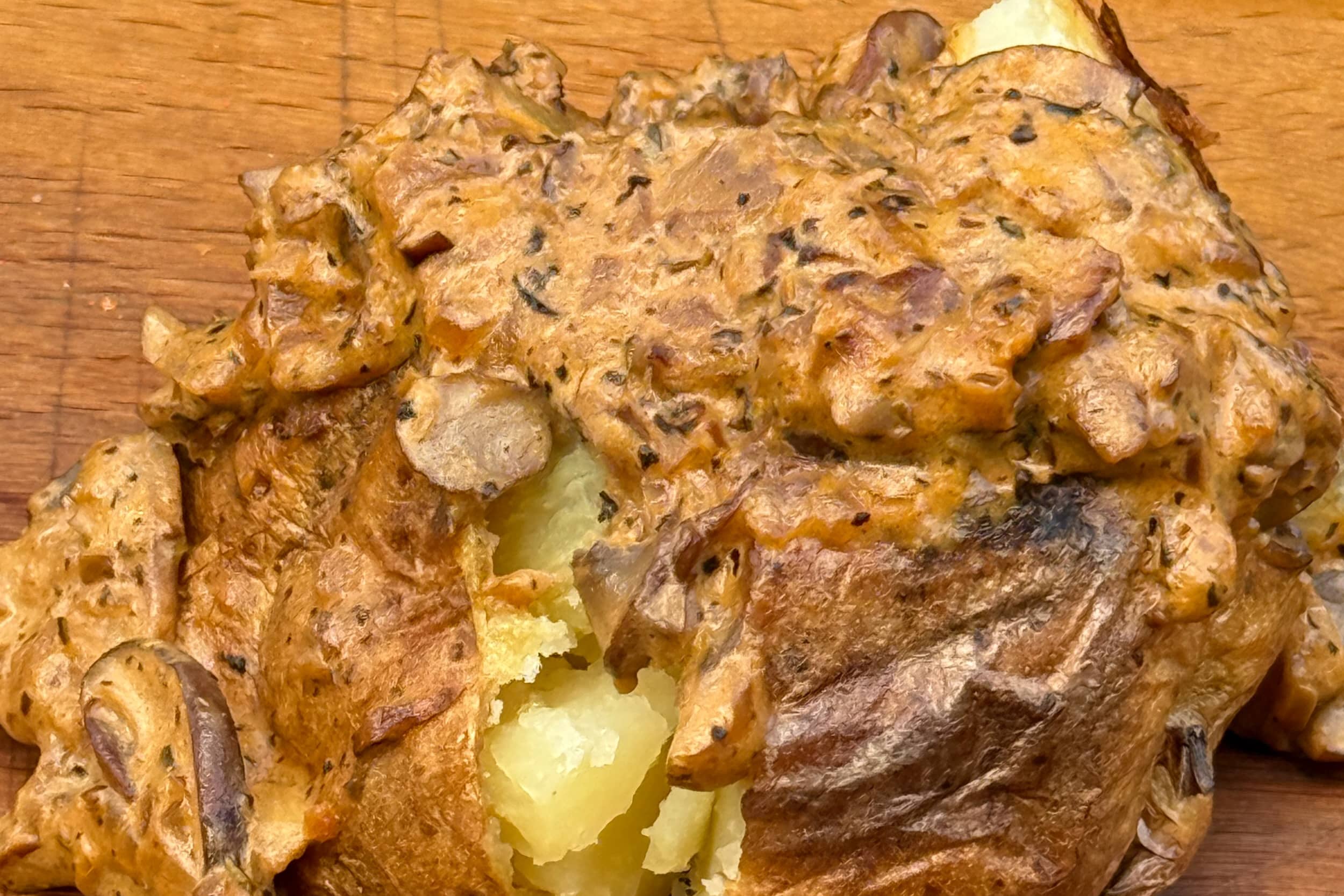 This is our first attempt at a stroganoff. We had some mushrooms in the fridge and wanted a new topping for a jacket potato. This was the perfect pairing. It’s rich and delicious, hearty and inexpensive.