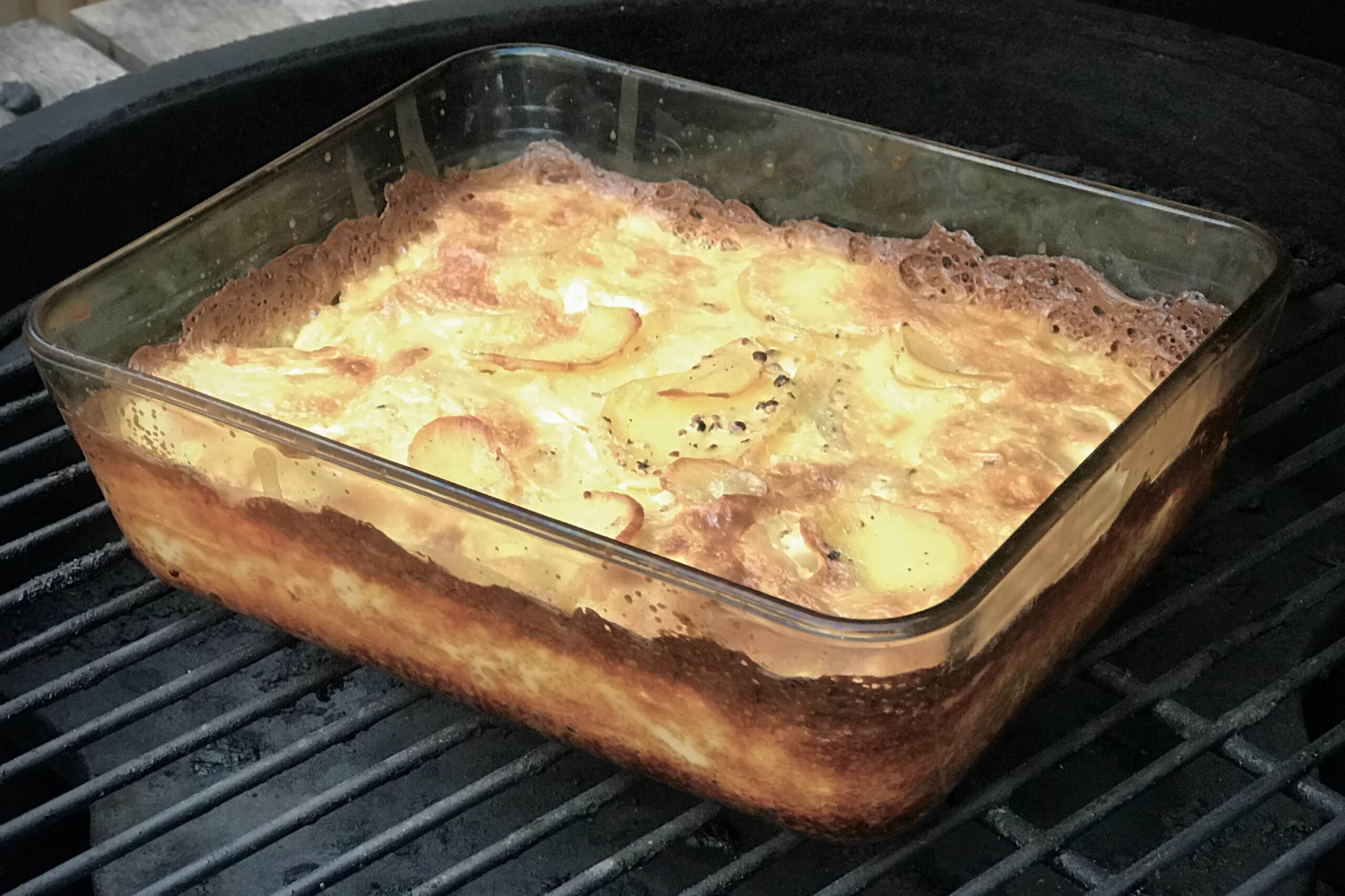 Doing this dish on the Big Green Egg is super easy and the slight smokiness really adds to it, the smoke and the cream just go hand in hand. It makes a great alternative to roast potatoes with your Sunday lunch.
