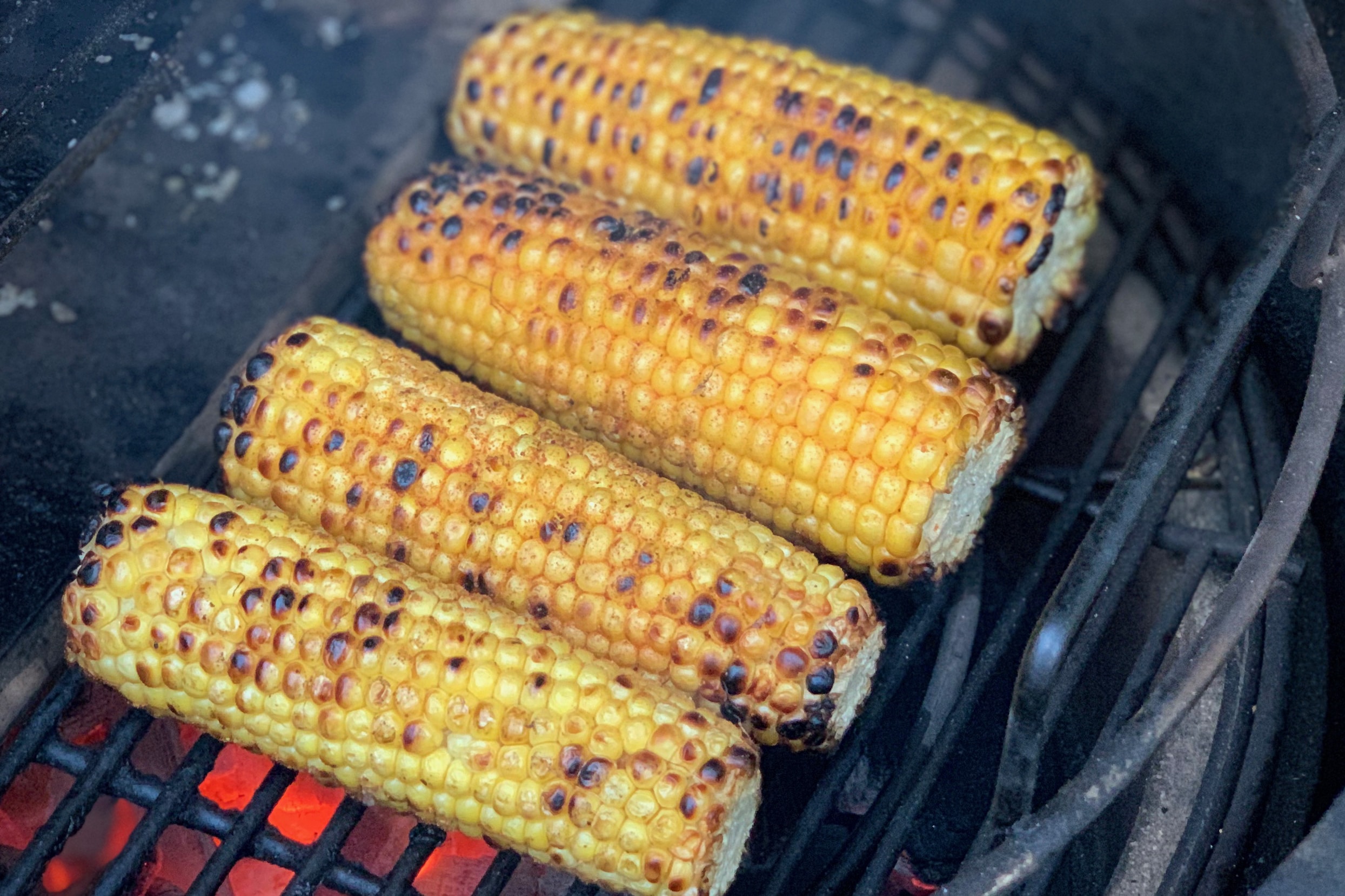 - Place the corn on the grid and lightly drizzle the top of the corn with olive oil.