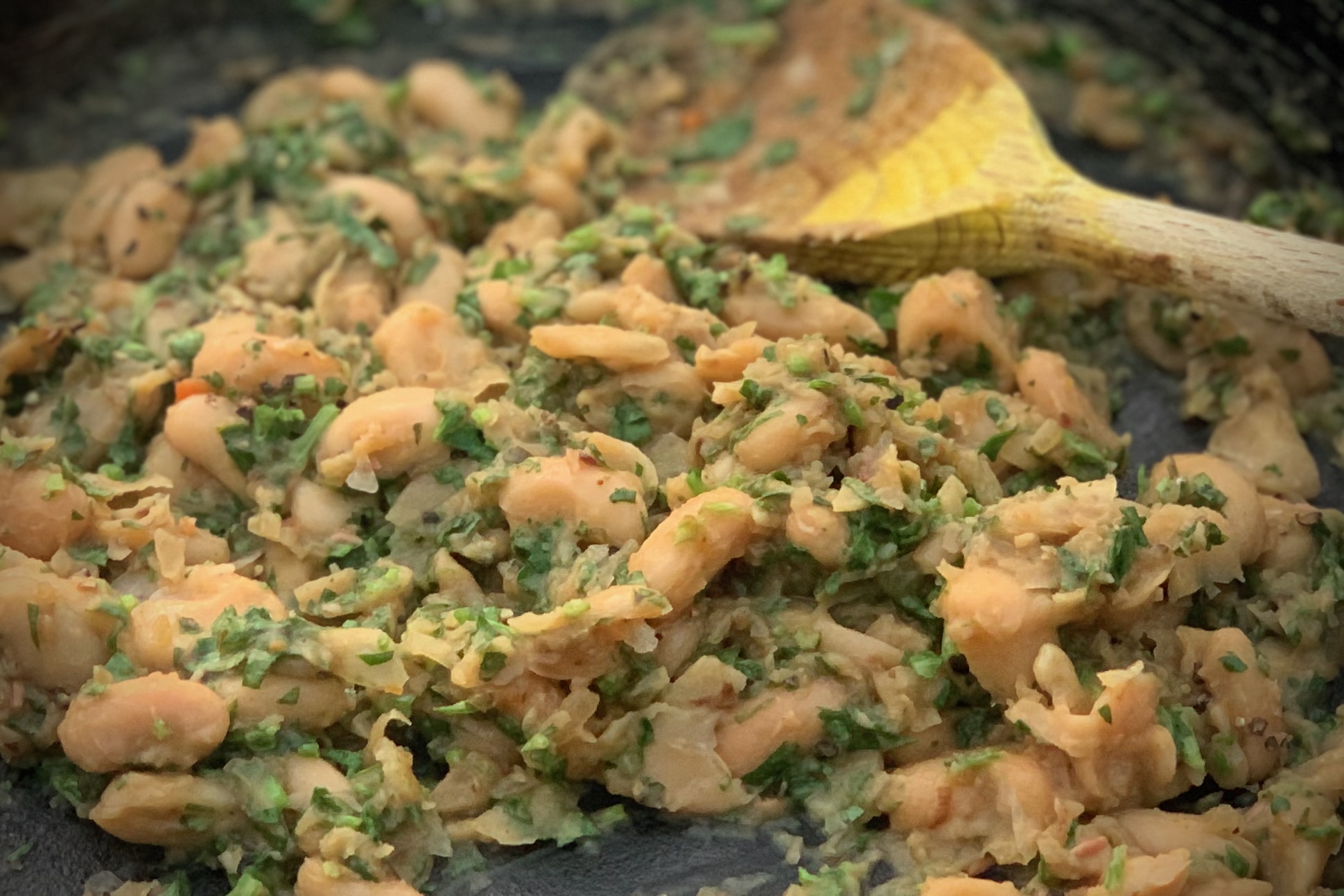 - Once cooked take the beans off the Egg and mash with the back of a fork, leave a few good lumps for texture.