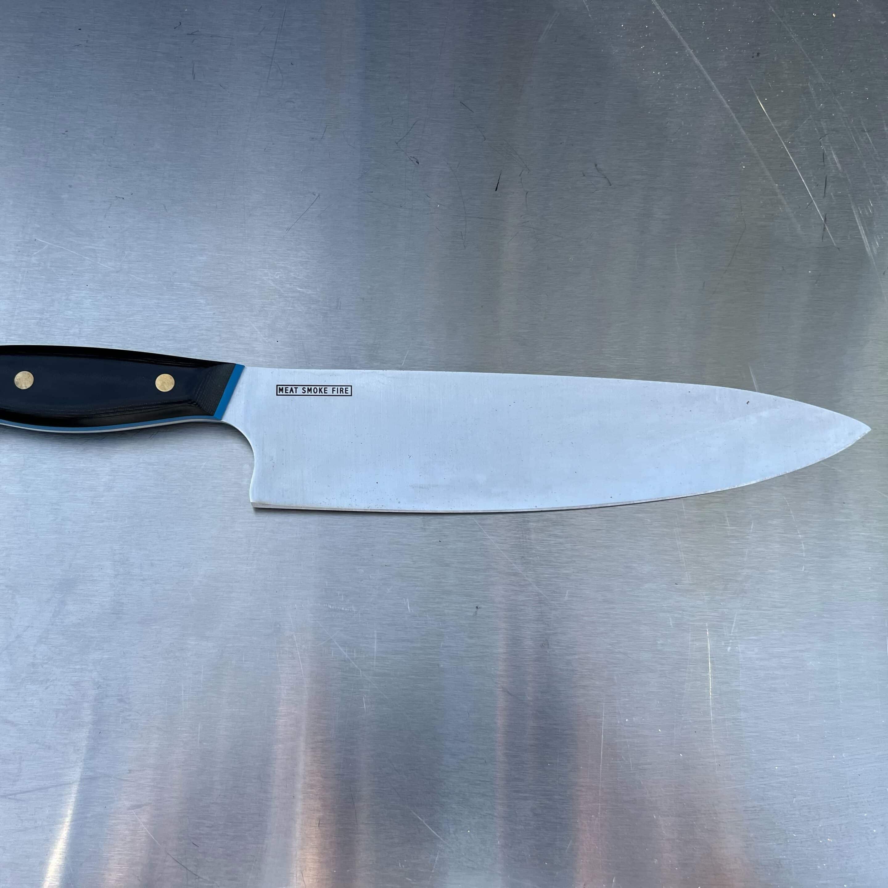 Each knife features a subtle, engraved Meat Smoke Fire logo on the right-hand side of the blade.
