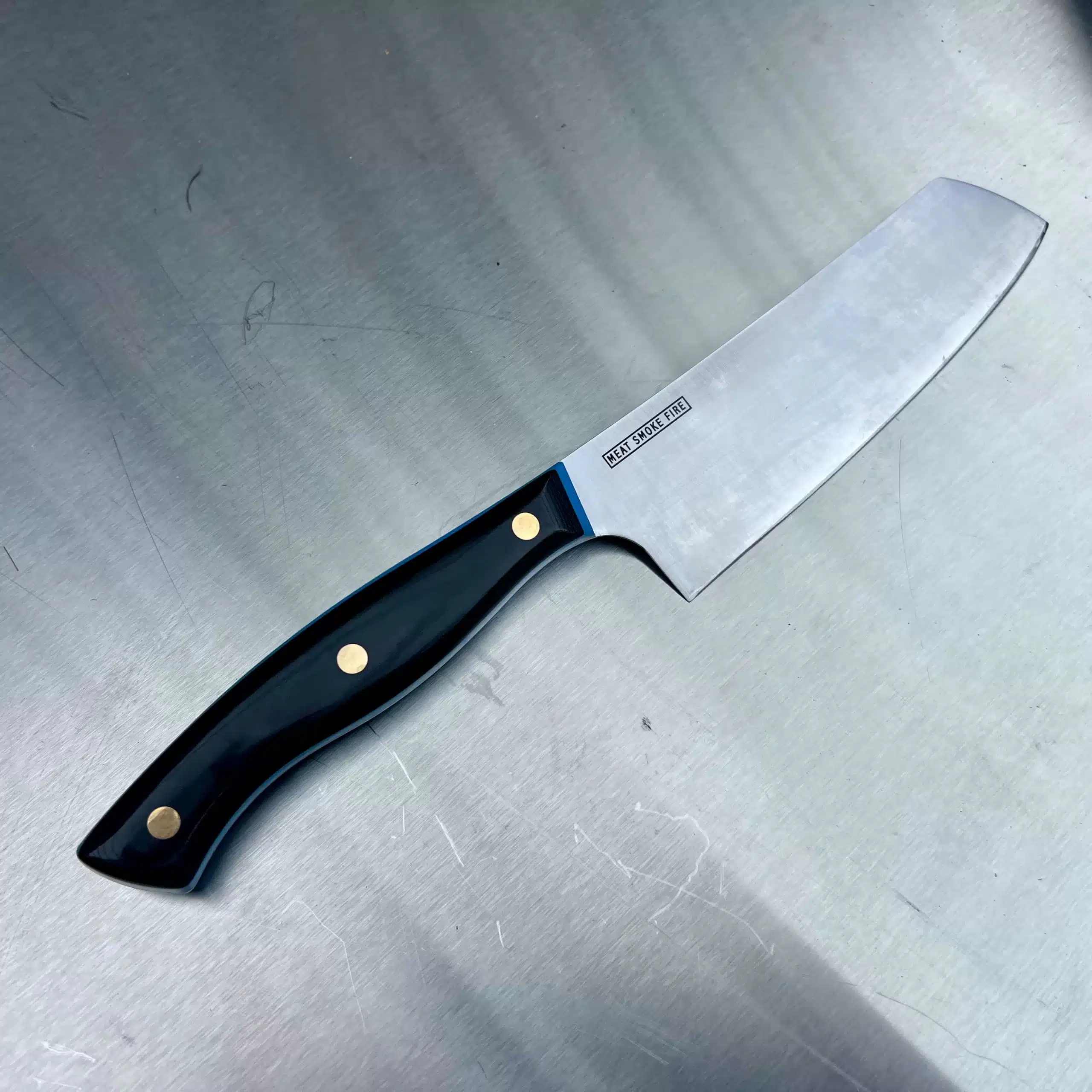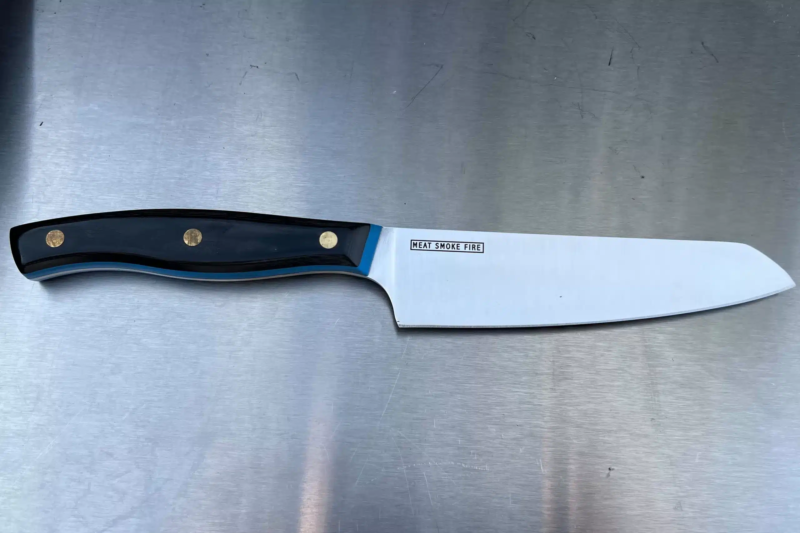 Each knife features a subtle, engraved Meat Smoke Fire logo on the right hand side of the blade.