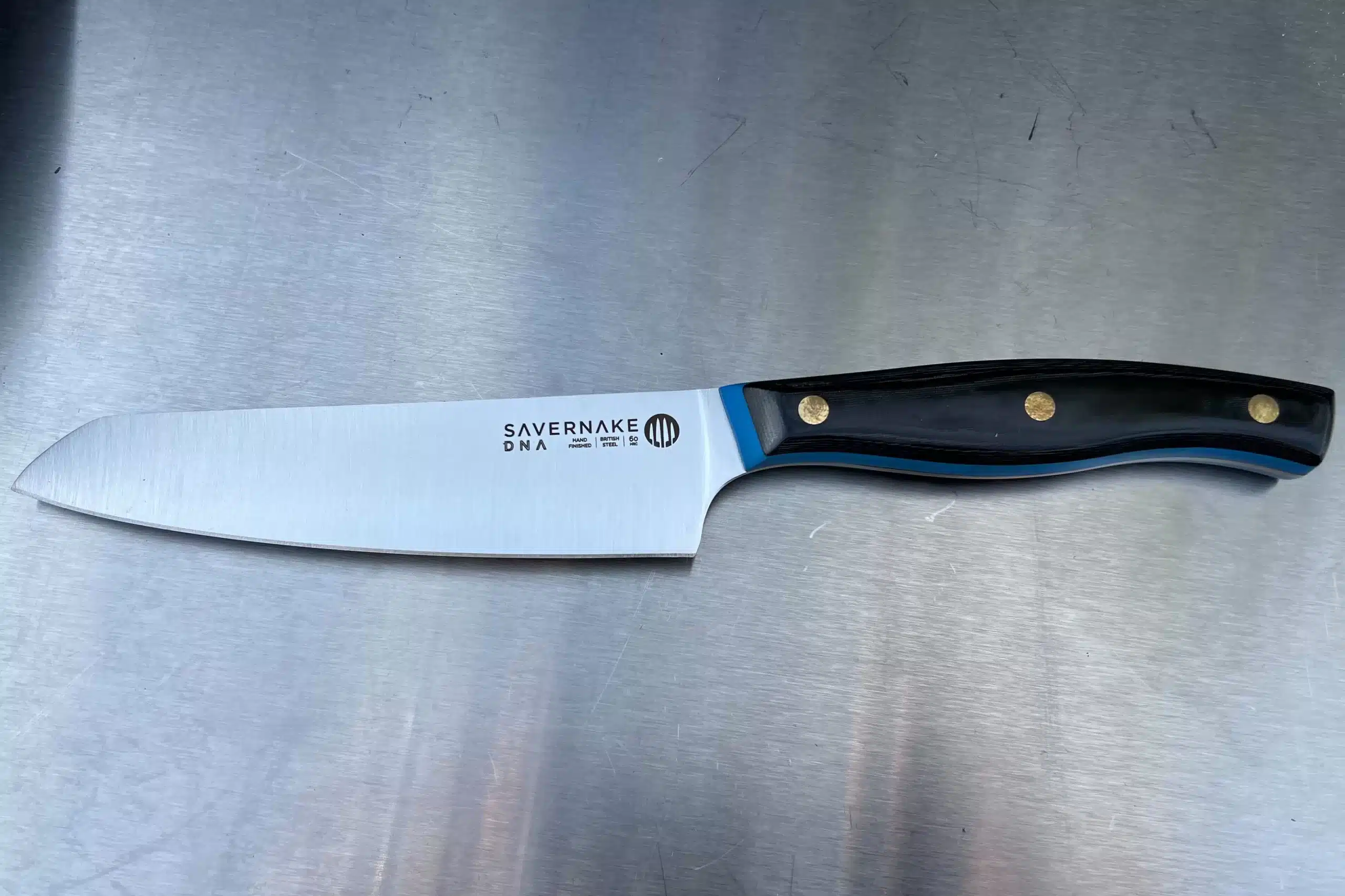 We've teamed up with Savernake, based in Wiltshire, to bring you our British-made Meat Smoke Fire branded knives. The blades are made from Sheffield stainless steel, which is 95% recycled. The handles have been designed to incorporate a blue liner beside the blade, surrounded by a black micarta handle. Micarta is ideal for knives used outdoors as it's an inorganic microporous material, making it waterproof. The fact that it is waterproof is one of the number one reasons as to why Micarta is so popular.
