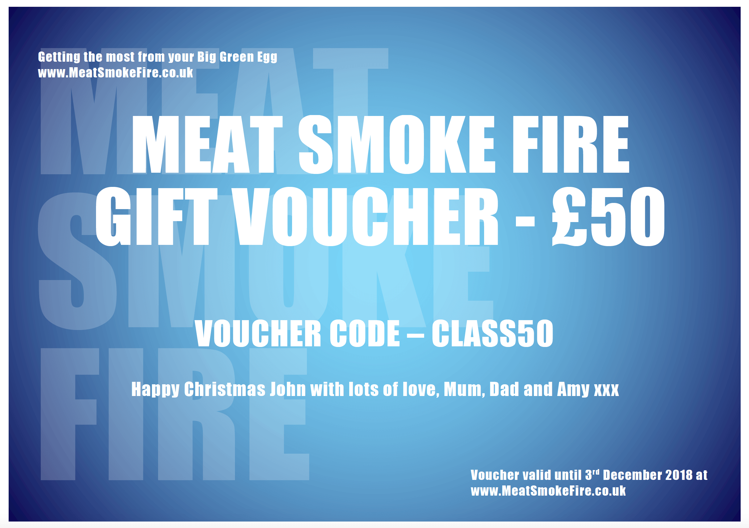 - Gift vouchers are available in multiple values to spend on the Meat Smoke Fire website (https://meatsmokefire.co.uk).