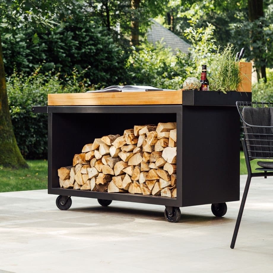 - A ceramic worktop can be left outside permanently, a teak wood worktop is best placed indoors in a dry area and should be treated regularly with an oil suitable for food.