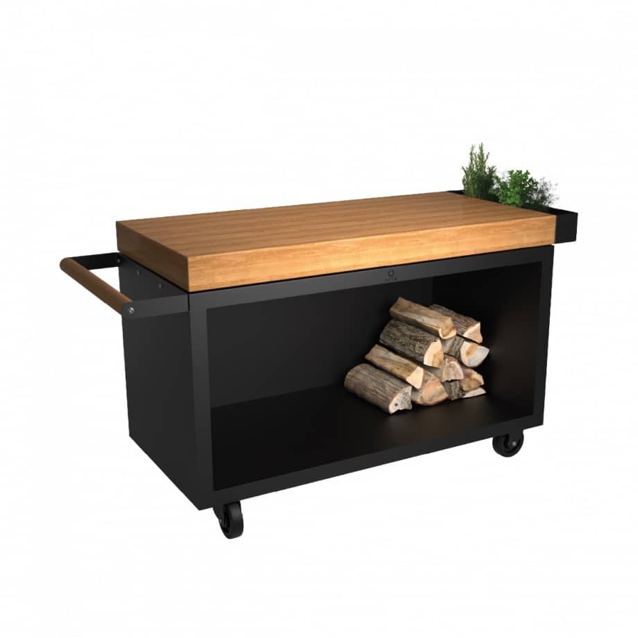 The OFYR Mise en Place Table Corten 135 PRO is incredibly handy to use with your cooking unit, allowing you more space to prepare your food. With the 135x65 cm, there is ample working space. The chopping board is available in teak wood and dark grey ceramic.